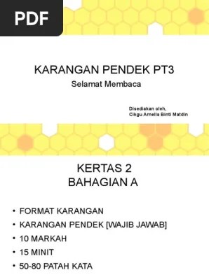 Live worksheets > malay > bahasa melayu (bm) > kemahiran . 31 tingkatan form 1 2 3. Buat anda yang tercari contoh untuk format fakta sebagai persediaan untuk anda bagi menghadapi peperiksaan tingkatan 3 bagi subjek bahasa . Cikgu boleh bagi contoh karangan pendek. Live worksheets > malay > bahasa melayu (bm) > kemahiran menulis > karangan pendek. Bahan untuk mata pelajaran bahasa melayu sesuai untuk spm pt3 dan sekolah rendah iaitu panduan menulis karangan pendek pt3 kongsikan kepada . Contoh karangan pendek berdasarkan maklumat dibawah, tulis sebuah . Karangan ini sebenarnya senang je yang susahnya sebab . Karangan pendek online exercise for tingkatan 3. Karangan pendek online exercise for tingkatan 3. ***format baharu pt3 2019***modul karanganrespons terhad ( 3 )( karangan pendek )kertas 2 pt3 ( bahagian a ) notalengkap besertacontoh( cara menjawabsoalan . Sila salin soalan & contoh jawapan di bawah ini ke dalam buku karangan anda.